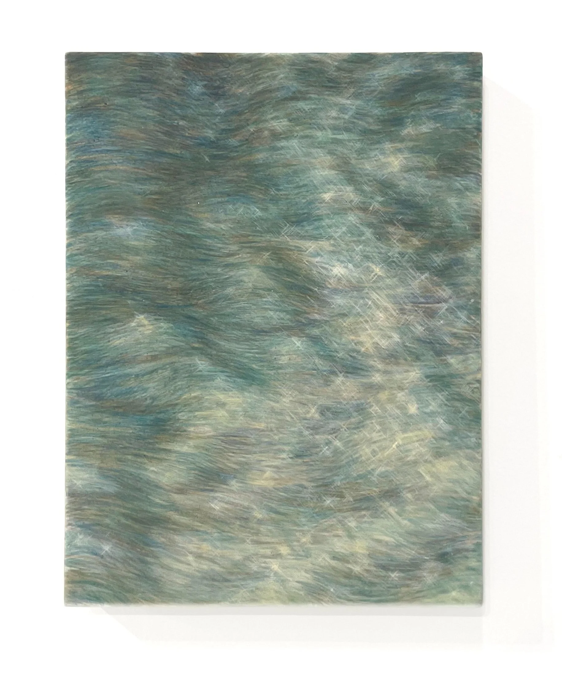 emerald , 2024, casein on panel, 6in x 8in, 12.3cm x 20.3cm.