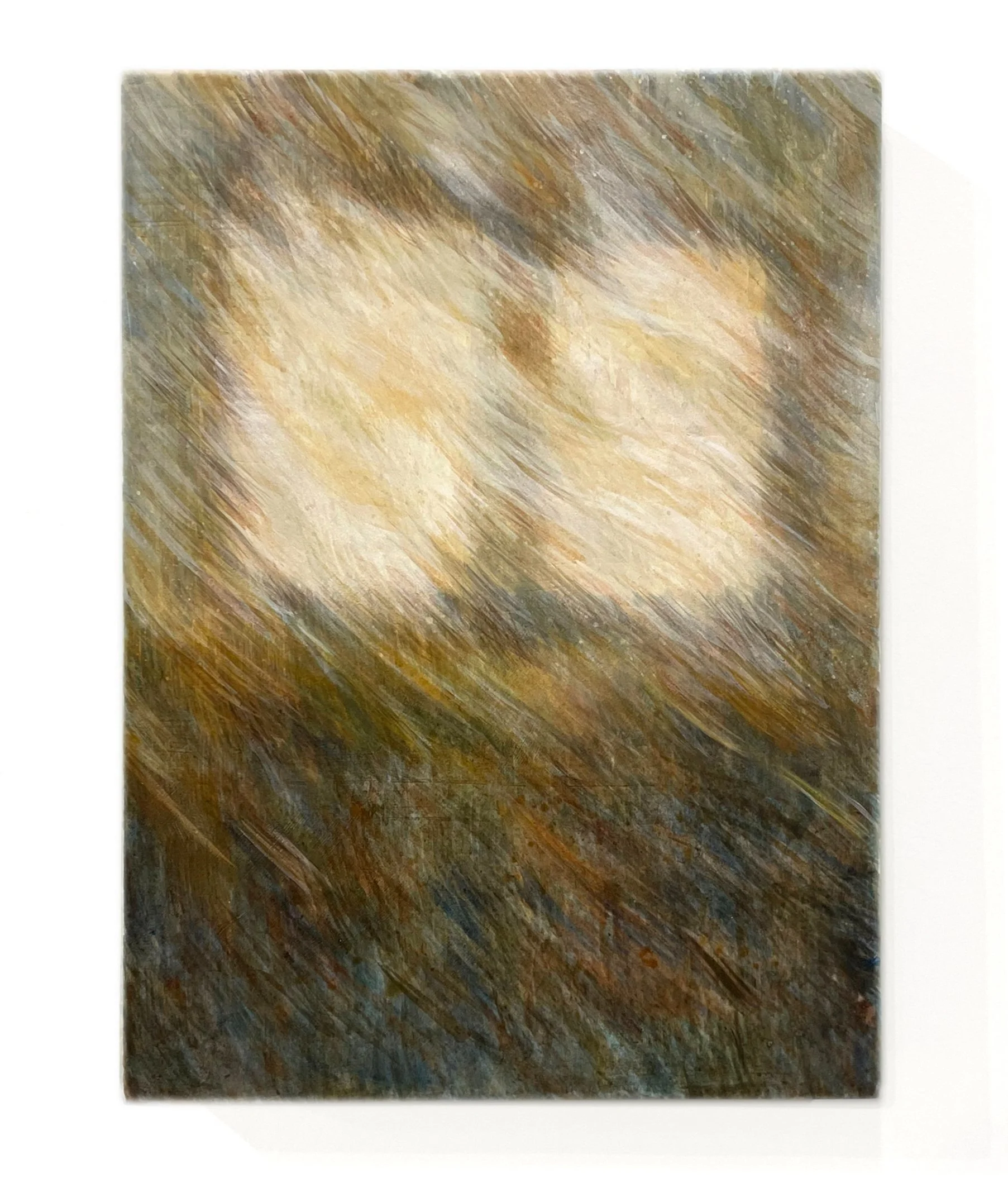 (a) present, 2025, egg tempera on panel, 6in x 8in, 12.3cm x 20.3cm.